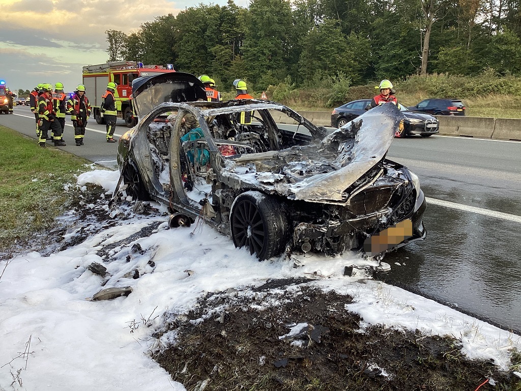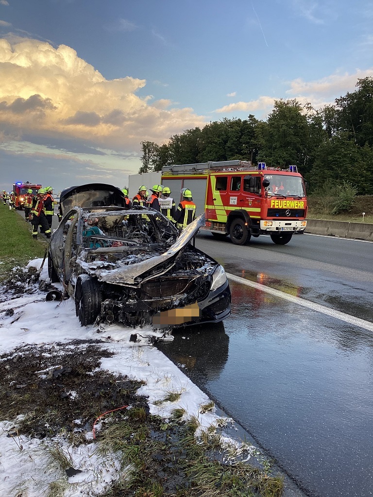 Beim Eintreffen der ersten Kräfte stand das Fahrzeug in Vollbrand. Umgehend wurde ein Löschangriff unter Atemschutz durchgeführt. Die Einsatzstelle wurde abgesichert und die Fahrbahn komplett gesperrt. Nach Ablöschen des PKWs konnte der Verkehr einspurig daran vorbei geleitet werden.