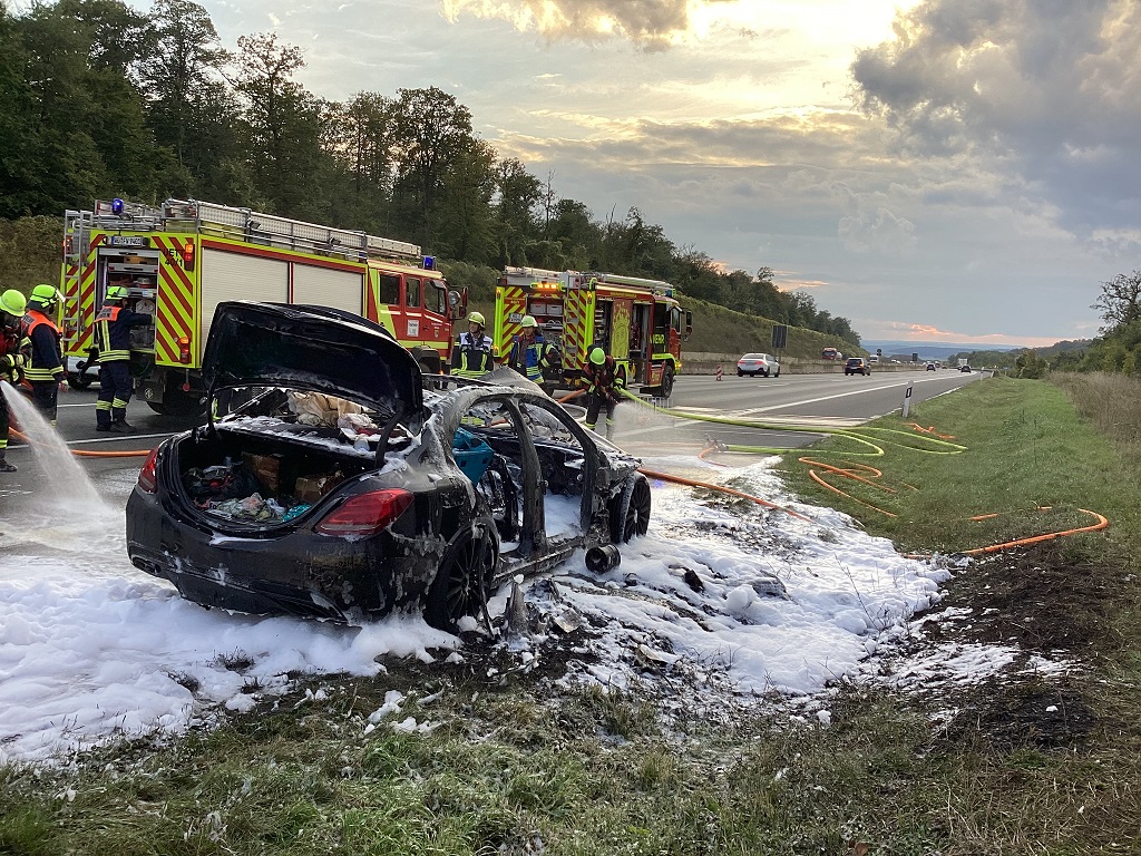 Um 17.56 Uhr wurden die Feuerwehren aus Helmstadt und Uettingen zusammen mit Polizei und Rettungsdienst auf die BAB 3 alarmiert. Gemeldet war dort ein PKW Brand in Fahrtrichtung Frankfurt.