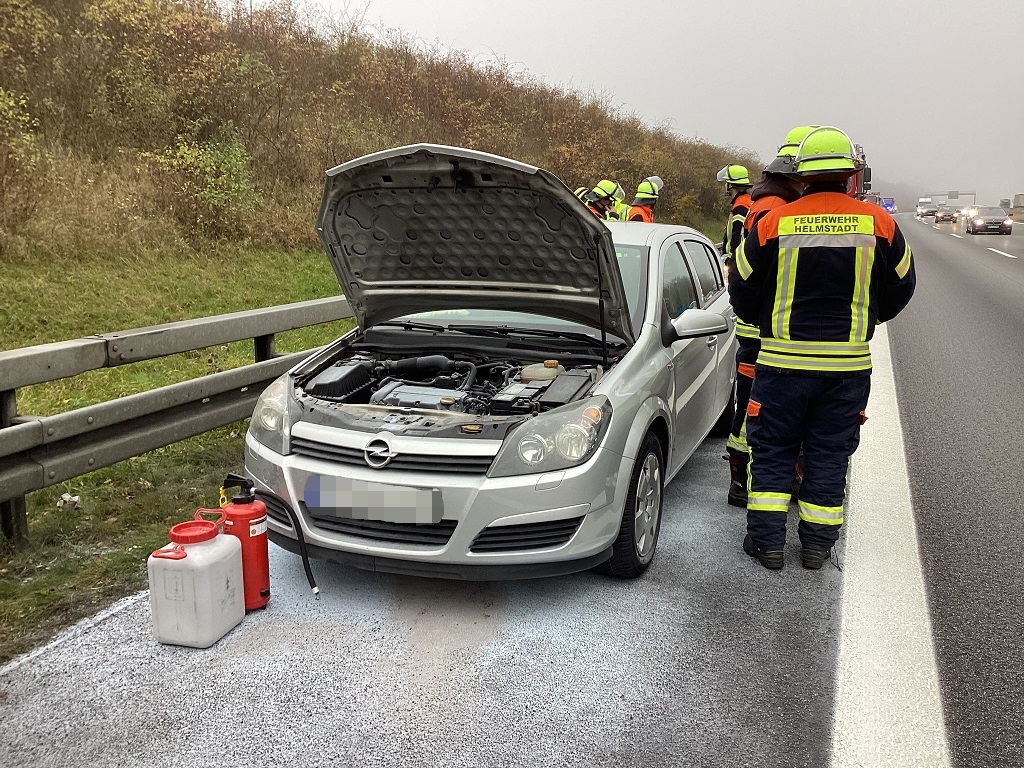 Beim Eintreffen der ersten Einsatzkräfte stand ein rauchendes Fahrzeug auf dem Standstreifen. Die Einsatzstelle wurde abgesichert und die Lage erkundet. Bei der Kontrolle vom Motorraum wurden kleinere Flammen festgestellt. Diese konnten mit einem Feuerlöscher bekämpft werden.